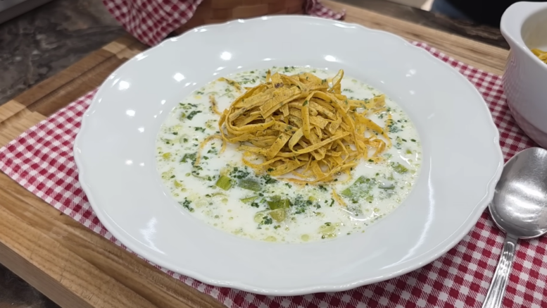 Ha igazán különleges hatást szeretnénk, a palacsintacsíkokat kis halomba rendezzük a tányér közepén, és arra merjük rá a levest. Egyszerű, mégis látványos.